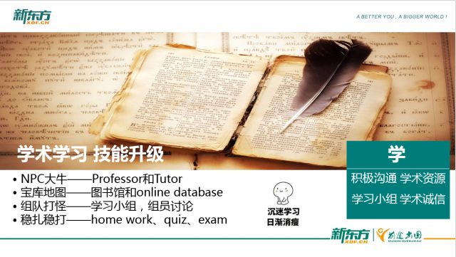 在学习方面,同学们要保证积极沟通、学术诚信、充分利用身边的学术资源、建立学习小组。